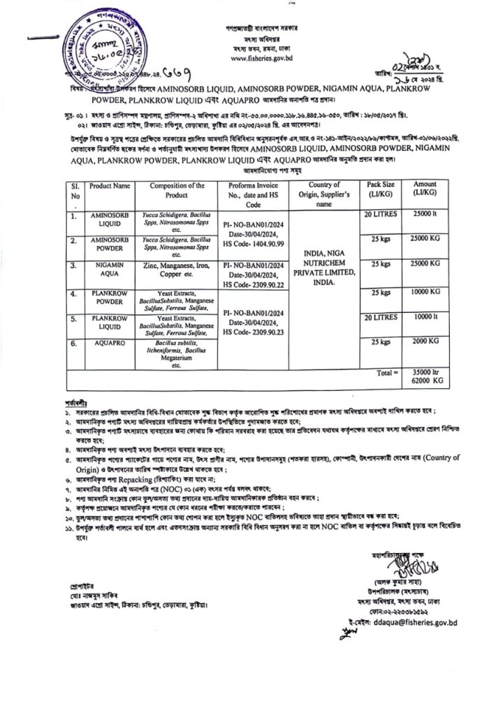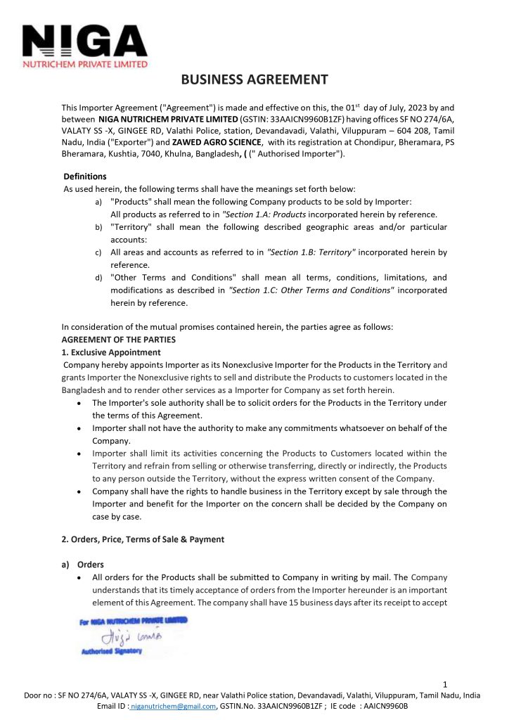 In Bangladesh, We tied up with Zawad Agro Science, Bangladesh for Aquaculture direct application products. Zawad Agro Science represents NigaNutrichem Private Limited in Bangladesh and jointly working on Product launching and promotion, and conducting various trials in Government institutes and Aquaculture farms. Zawad Agro Sciences jointly working on various studies and challenges faced by aquaculture farmers to develop innovative products to provide solution to the Fish and Shrimp culture farmers.