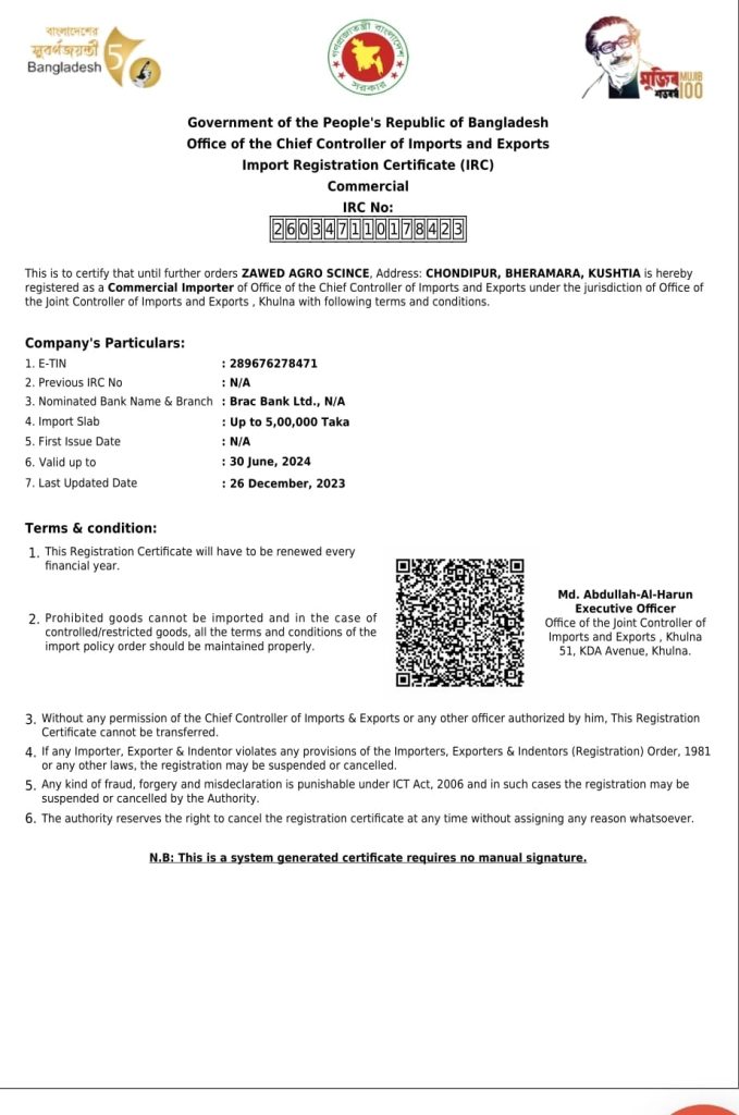 Mr. Md. Nazmush Sakib the Managing Director and Chairman of the Zawed Agro Science and General BioNutri Company is a Yang entrepreneur of Agro industrial Sector. As well as he is the Managing Director and Chairman from 2016. The Managing Director of the Company is a Producer, whole seller and retailer of the Fish Feed additives, Poultry Feed additives, and Cattle Feed additives. He is a Importer, Whole Seller & retailer of feed additives and Medicine 9 years. He has been running their business with good market reputation. During their trading and agro industries business period, He has created a good marketing network upon utilizing his experience. Before starting the business, he worked in different leading agro industries Business Company like World Fish, FTF, Aqua Solution, Aller Aqua, ACI Animal Health, CP Bangladesh etc, Square animal Health, work as a Managing Director of General Agrovet limited and Chairman of Agragami Agro Industries. He also gets Appreciation award from Sylhet Agricultural University a He has gathered a lot of experience in feed Additives marketing & Fish Hatchery during service period. He has completed Master of Science (MS in Fisheries Management) from Bangladesh Agricultural University & B.Sc Fisheries (Hon’s) from Sylhet Agricultural University. His enthusiasm for excelling, harvesting, and cultivating innovation has roped in professionals from different fields to join the business and articulate their talents to transcending lengths. He looks after the overall business affairs and administration of the Procurement, Production, Marketing and also providing all required logistic supports. The management of the company has achieved well experience on Feed additives & Marketing